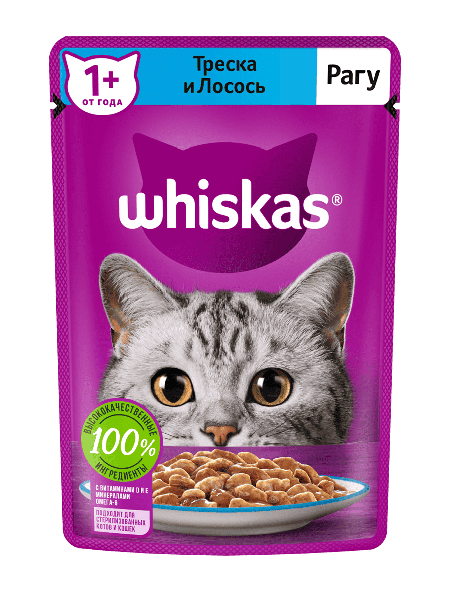 إنه نظام غذائي متوازن مُعدّ حسب رغبة قطتك. يخنة شهية مع سمك القد والسلمون في صلصة كثيفة ستُرضي حيوانك الأليف بالتأكيد. الحياة مليئة بالتحديات، لأن ويسكاس® يحتوي على كل ما تحتاجه لجعل طعام قطتك ليس لذيذًا فحسب، بل صحيًا أيضًا. يدعم ويسكاس® جهاز المناعة، ويعتني بالهضم السليم، ويحافظ على صحة جلد قطتك وفرائها. مناسب للقطط المعقمة.