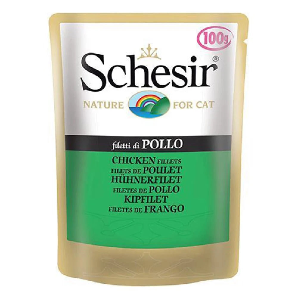 Schesir Cat Chicken Fillets is a moist food, good for cats. The top quality in different gelatin flavors to satisfy the palate of your cat: 100% natural ingredients, no artificial colors or preservatives; only the best parts of the fish and meat, cooked in steam and processed manually, in a practical form of packaging 85g.