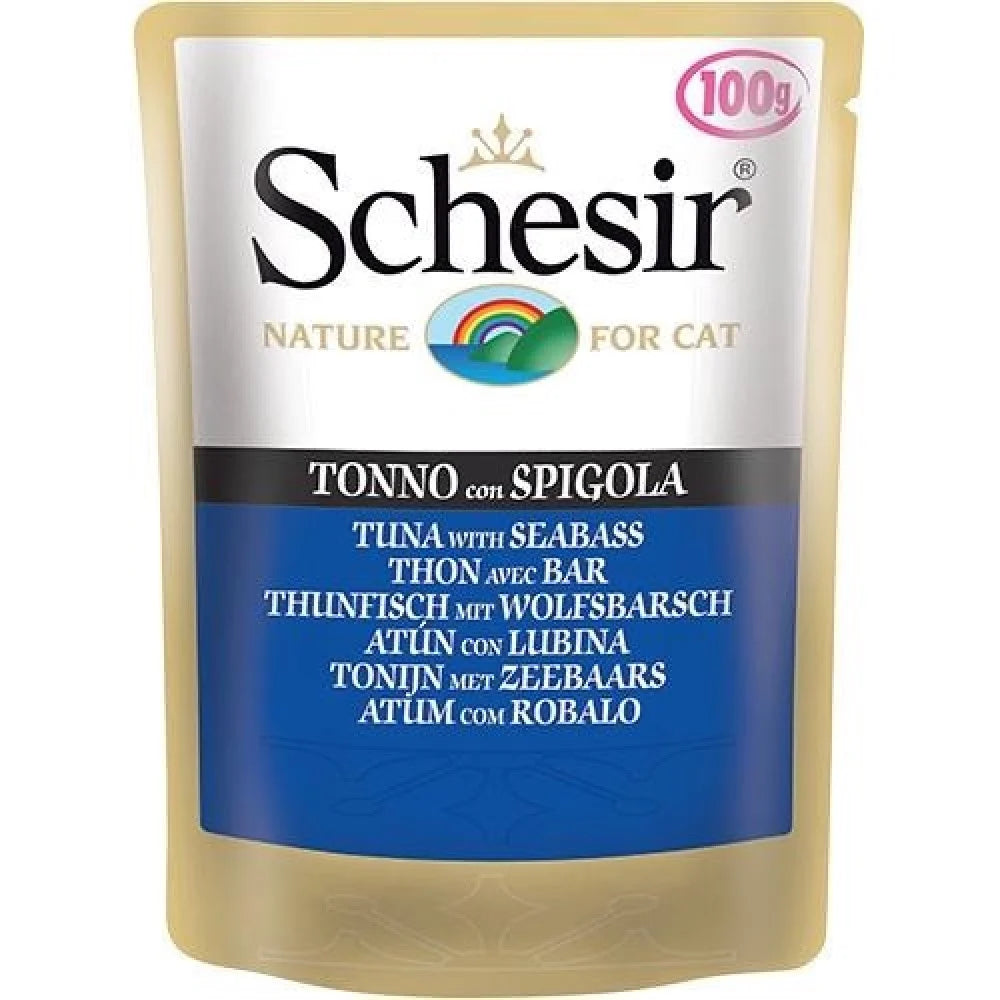 Schesir Cat Tuna With Sea Bass is a moist food, good for cats. The top quality in different gelatin flavors to satisfy the palate of your cat: 100% natural ingredients, no artificial colors or preservatives; only the best parts of the fish and meat, cooked in steam and processed manually, in a practical form of packaging 85g.