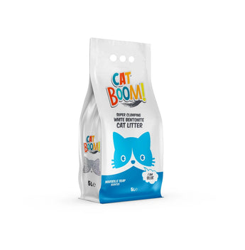# Cat Boom Clumping Cat Litter Different Scents 5L Say goodbye to litter box odors and hello to happy cats! Cat Boom's premium clumping formula locks in moisture instantly, making cleanup a breeze. Choose from our signature scent collection—each one designed to keep your home smelling fresh while your feline friend stays comfortable. The superior clumping action means less litter waste and more savings over time. Our dust-free formula is gentle on sensitive paws and respiratory systems, while the natural ingredients ensure safety for your beloved pet. Perfect for multi-cat households or single kitties who demand the best. Experience the difference that quality litter makes—your nose (and your cat) will thank you!