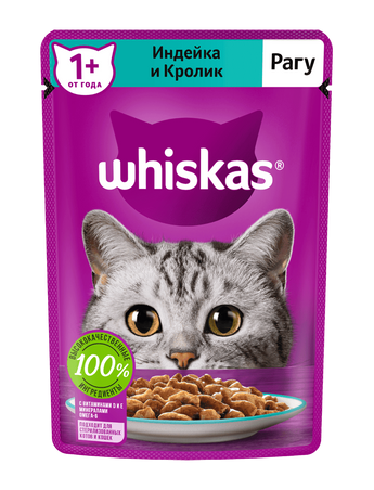 It's a balanced diet prepared the way your cat likes. An appetizing stew with turkey and rabbit in a thick sauce is sure to please your pet. Life is purrible, because Whiskas® contains everything you need to make your cat's food not only tasty, but also healthy. Whiskas® will support the immune system, take care of healthy digestion and the health of your cat's skin and coat. Suitable for sterilized cats and cats.