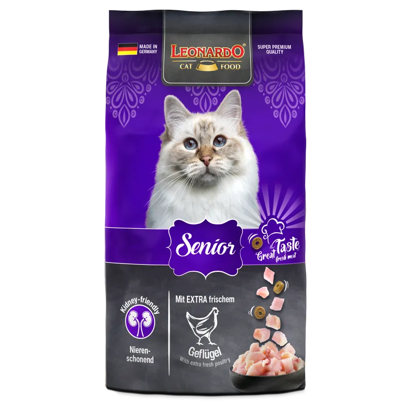 As cats grow older, their nutritional requirements change. Their energy requirements decrease and their immune systems weaken with age. LEONARDO Senior is adapted to these changes with a special formulation to keep your cat fit and healthy to a ripe old age.