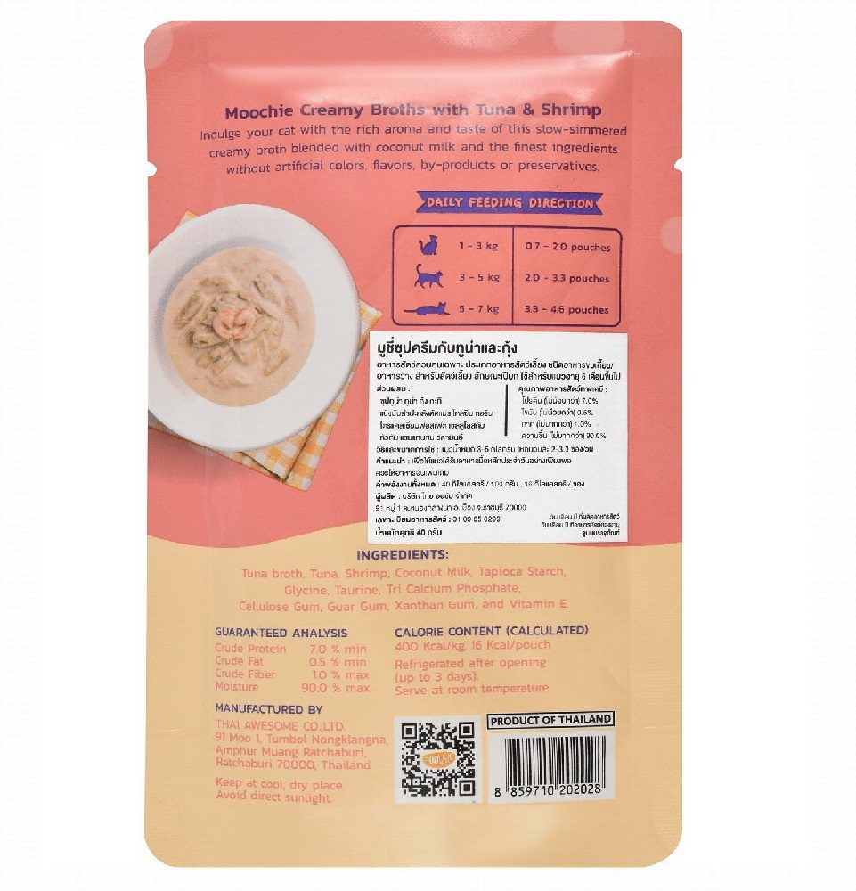 Moochie soup helps to reduce cat dehydration as well as creating a new dining experience to the cat like a personal chef to cook. Suitable for all cat breeds and age groups.