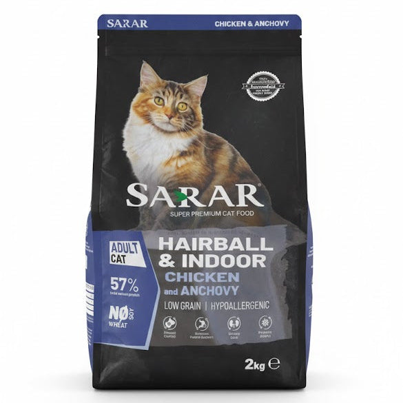 SARAR Super Premium Hairball & Indoor Adult Cat Food – Chicken & Anchovy (2kg)