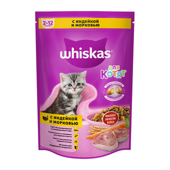 . Whiskas complete from 1 to 12 months Tasty Pillows with Milk Filling Appetizing Assortment with Turkey and Carrots is a balanced diet for a healthy and happy life for your kitten. Crispy pillows with milk inside will definitely appeal to your pet. In addition, Whiskas contains everything necessary so that your cat's food is not only tasty, but also healthy. Whiskas is: